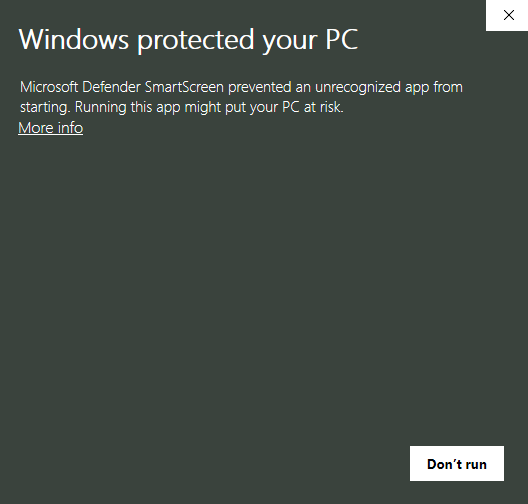 2. If you see the Windows Defender warning. Please click More Info and Run Anyway.